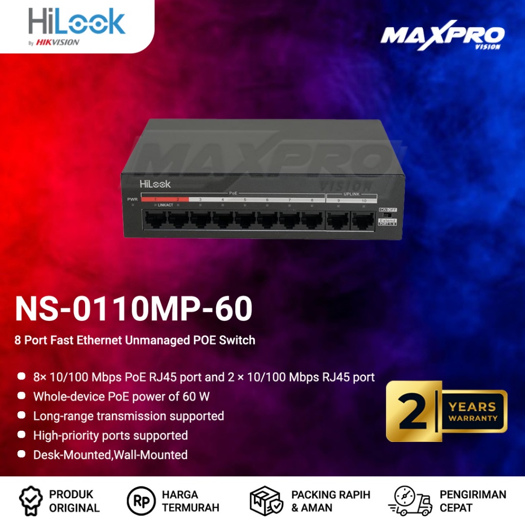 NS-0110MP-60 - HILOOK 8 PORT FAST ETHERNET UNMANAGED POE SWITCH