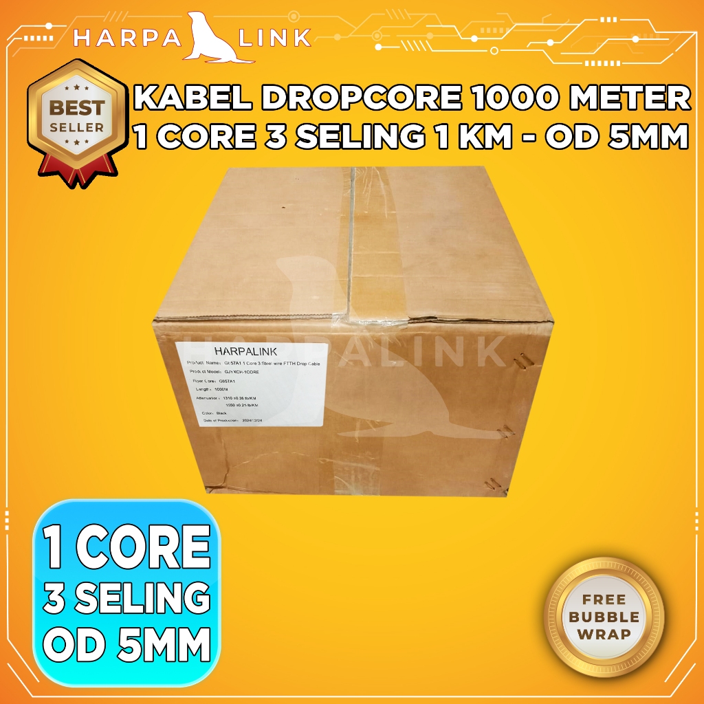 Kabel Dropcore Fiber Optic 1000 Meter / Kabel Dropcore Fiber Optic 1 Core 3 Seling 1KM / Kabel Fiber Optic Dropcore 1000
