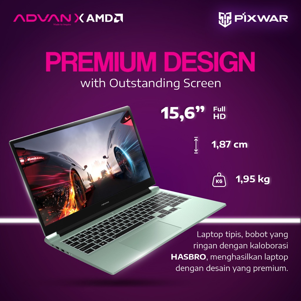 BEST DEALS ADVAN Laptop Gaming Pixwar AMD Ryzen 7 6800H 16GB/512GB 15.6" FHD WIFI 6 Dual Cooling System Windows 11
