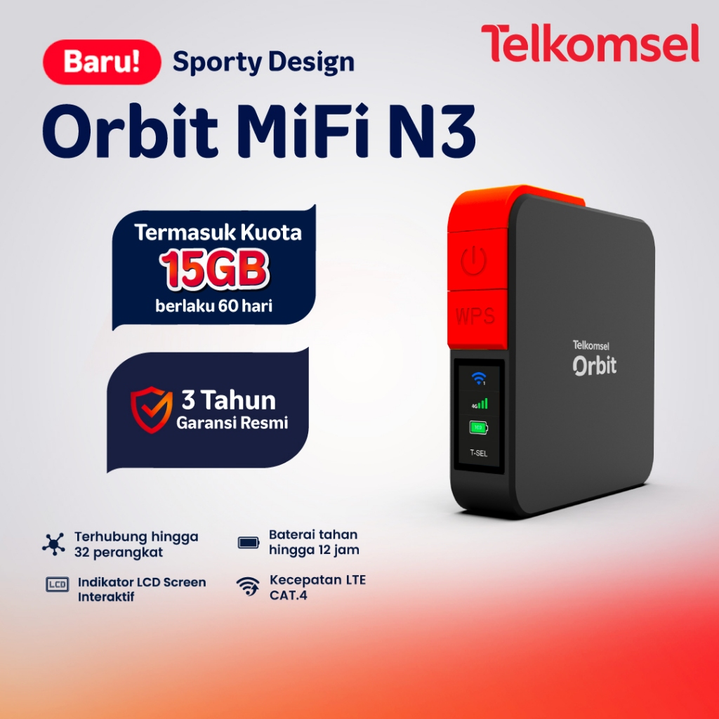 Telkomsel Orbit Mifi N3 Portable Modem Wifi 4G High Speed Bonus Data