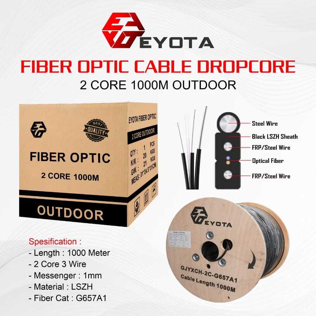 KABEL FIBER OPTIK DROPCORE 2 CORE 3 SLING 1000 M EYOTA PREMIUM 1000m
