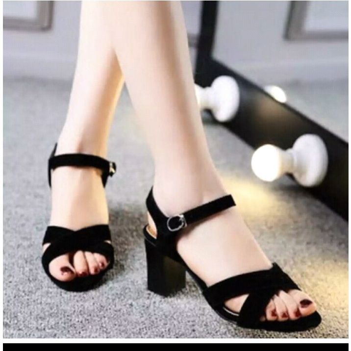 sandal hels wanita hak tahu 5 cm silang tali shy-0025