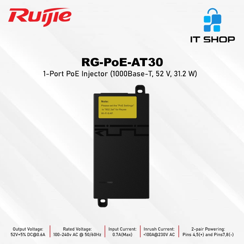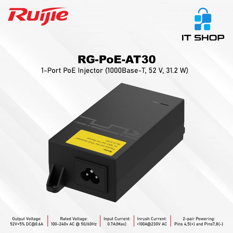 RUIJIE RG-POE-AT30 1 Port PoE Injector (1000Base-T, 52 V, 31.2 W)