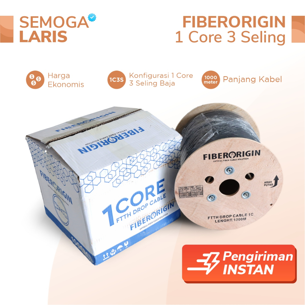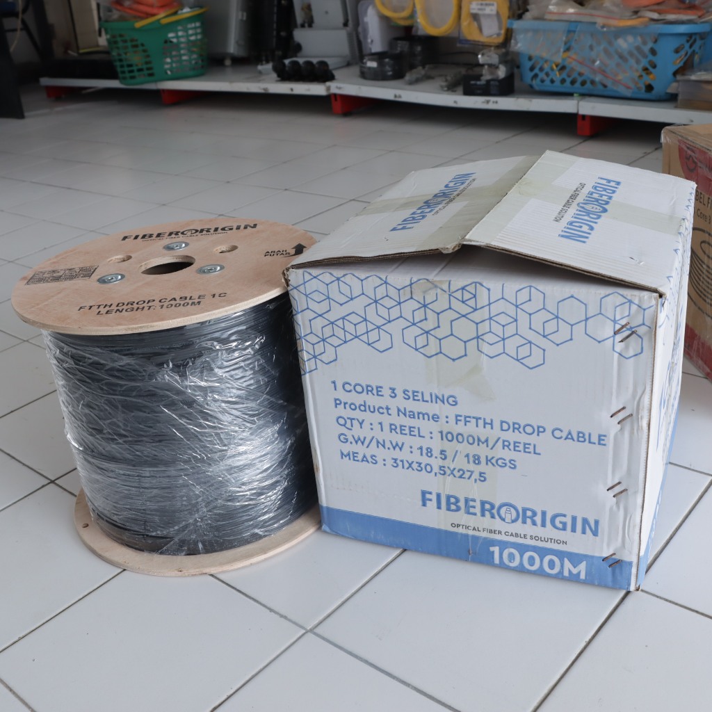 Dropcore 1C3S G657A1 1KM Fiberorigin - Kabel FO 1 Core 3 Seling Ekonomis - Dropwire FTTH FTTx 1000M