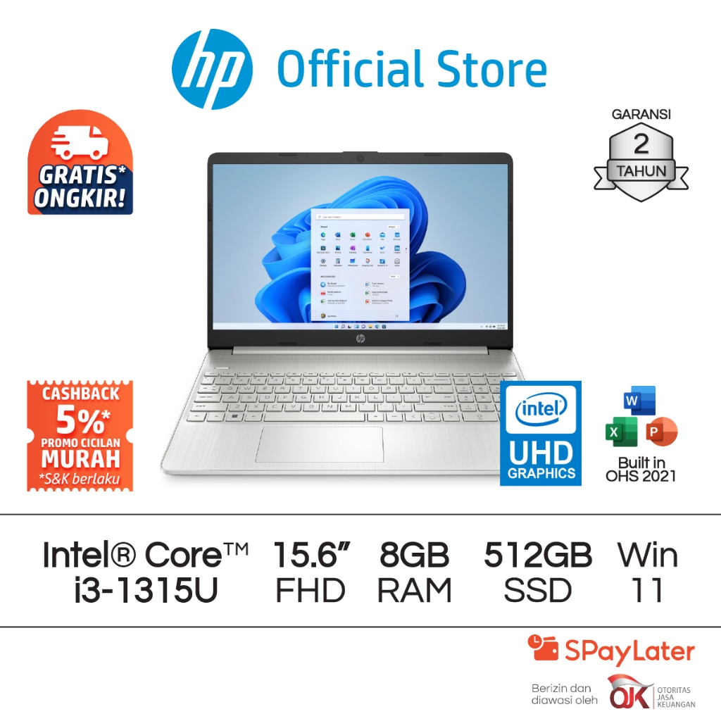 Laptop HP Intel Core i3 UHD 8GB RAM 512GB SSD Silver Windows 11 Home 15.6 Inch Garansi 2 Tahun Promo Murah Gratis Ongkir