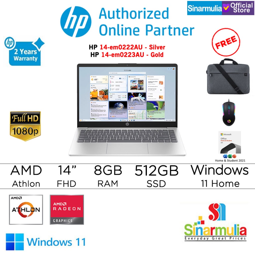 HP 14-em0222AU/em0223AU Athlon 7120U 512GB SSD 8GB FHD Win11+OHS
