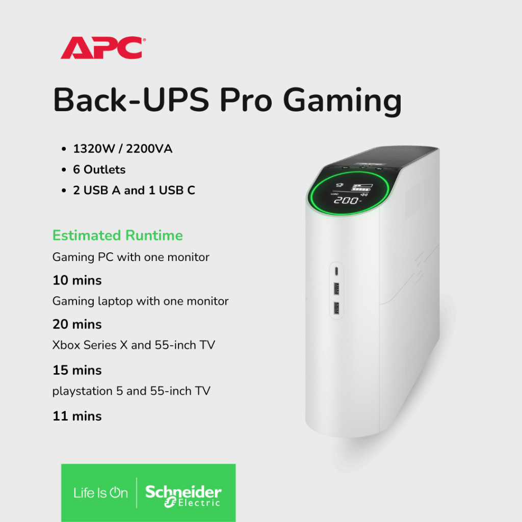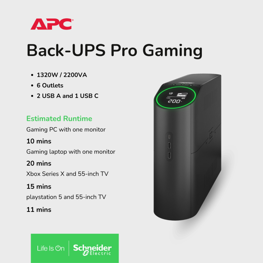 UPS APC Back-UPS Pro Gaming Sinewave Hitam Putih BGM2200-MSX BGM2200B-MSX