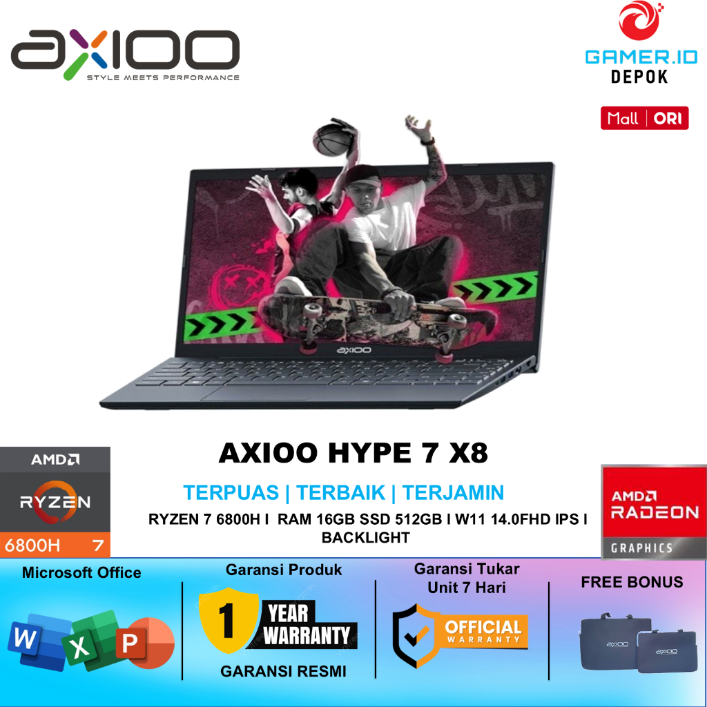 AXIOO HYPE 7 AMD X8 RYZEN 7 6800H 16GB 512GB WINDOWS 11 14.0FHD IPS BACKLIGHT KEYBOARD SUPORT HDMI