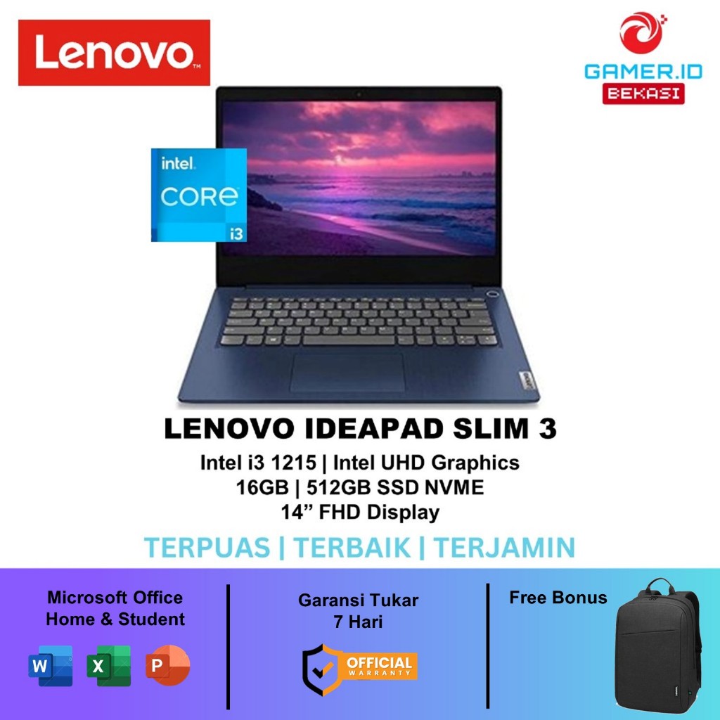 Lenovo Ideapad Slim 3 Intel Core i3 1215 16GB 512GB W11+OHS 14 Inchi FHD Blit Garansi 2 Tahun