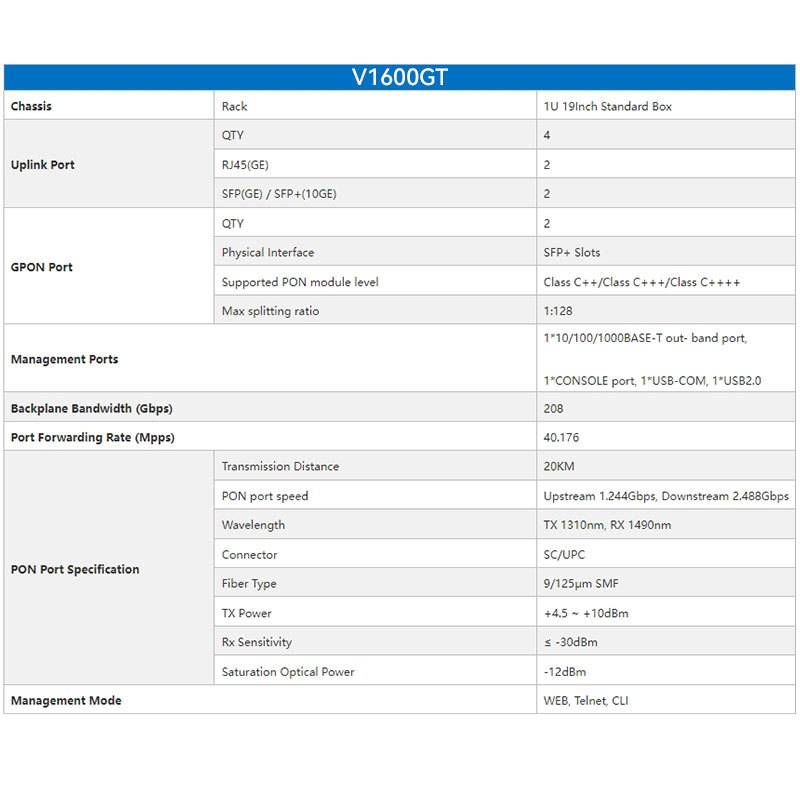 VSOL OLT GPON V1600GT 2PORT UPLINK 10GE+ SFP 9DB Layer 3 Support 256 User ONU lla