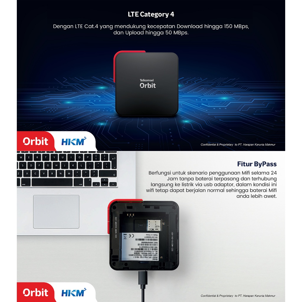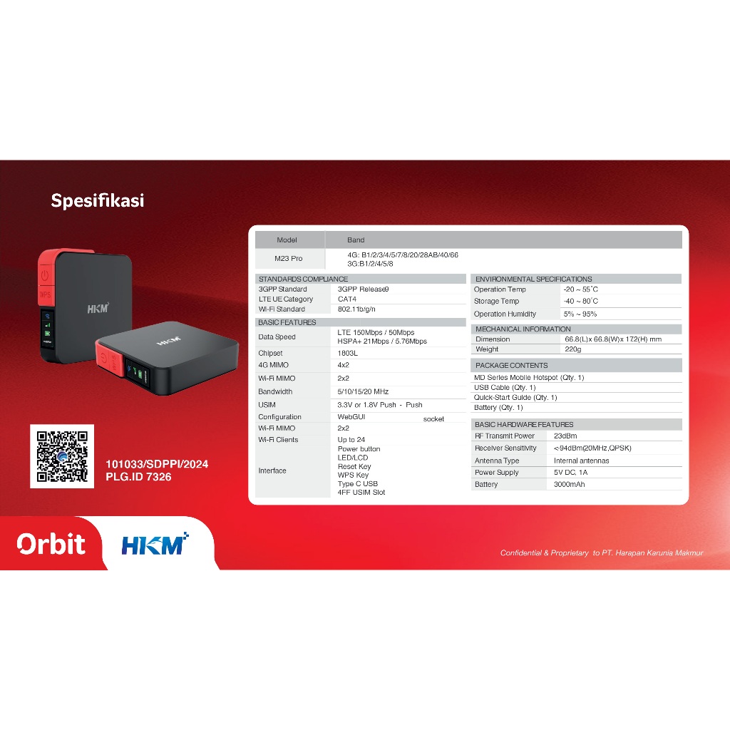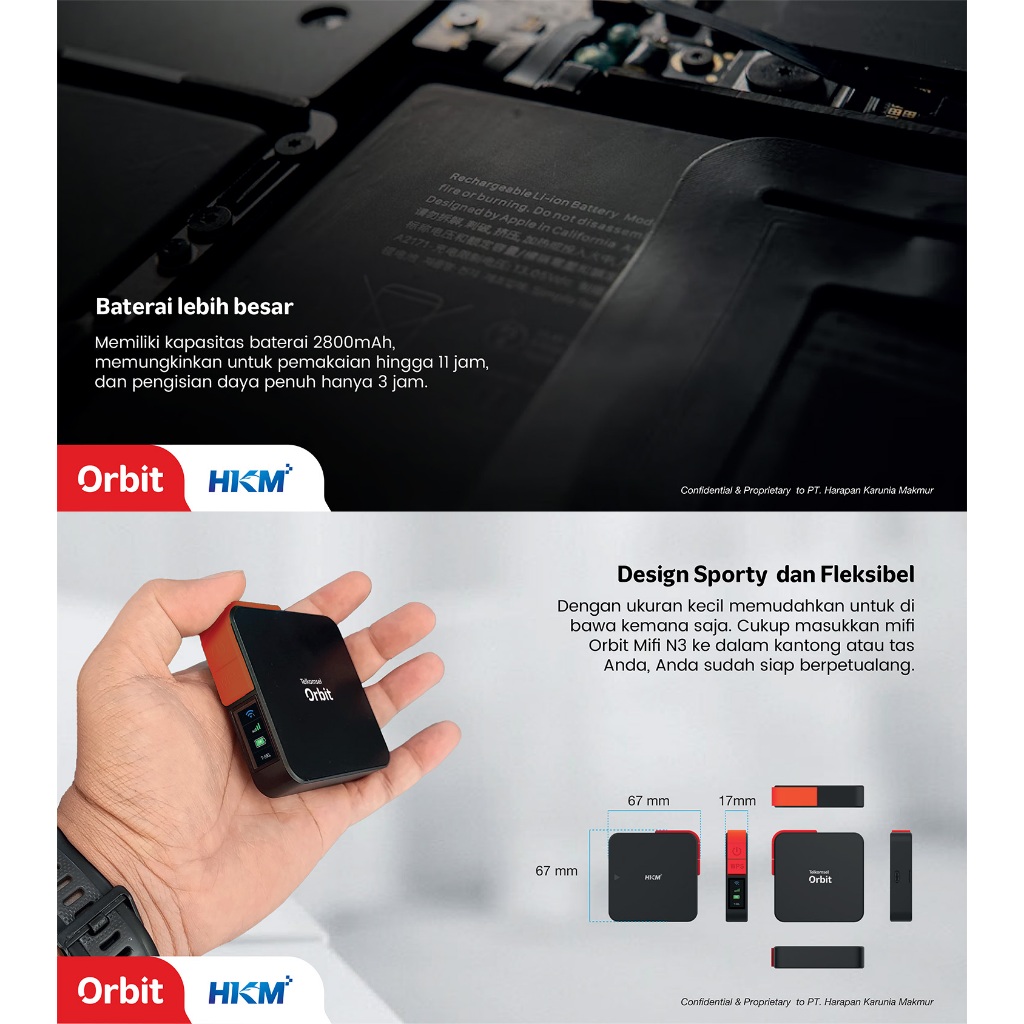 Telkomsel Orbit MiFi N3 / Orbit N3 / HKM M23 Pro Modem WiFi 4G Free KUOTA 15GB