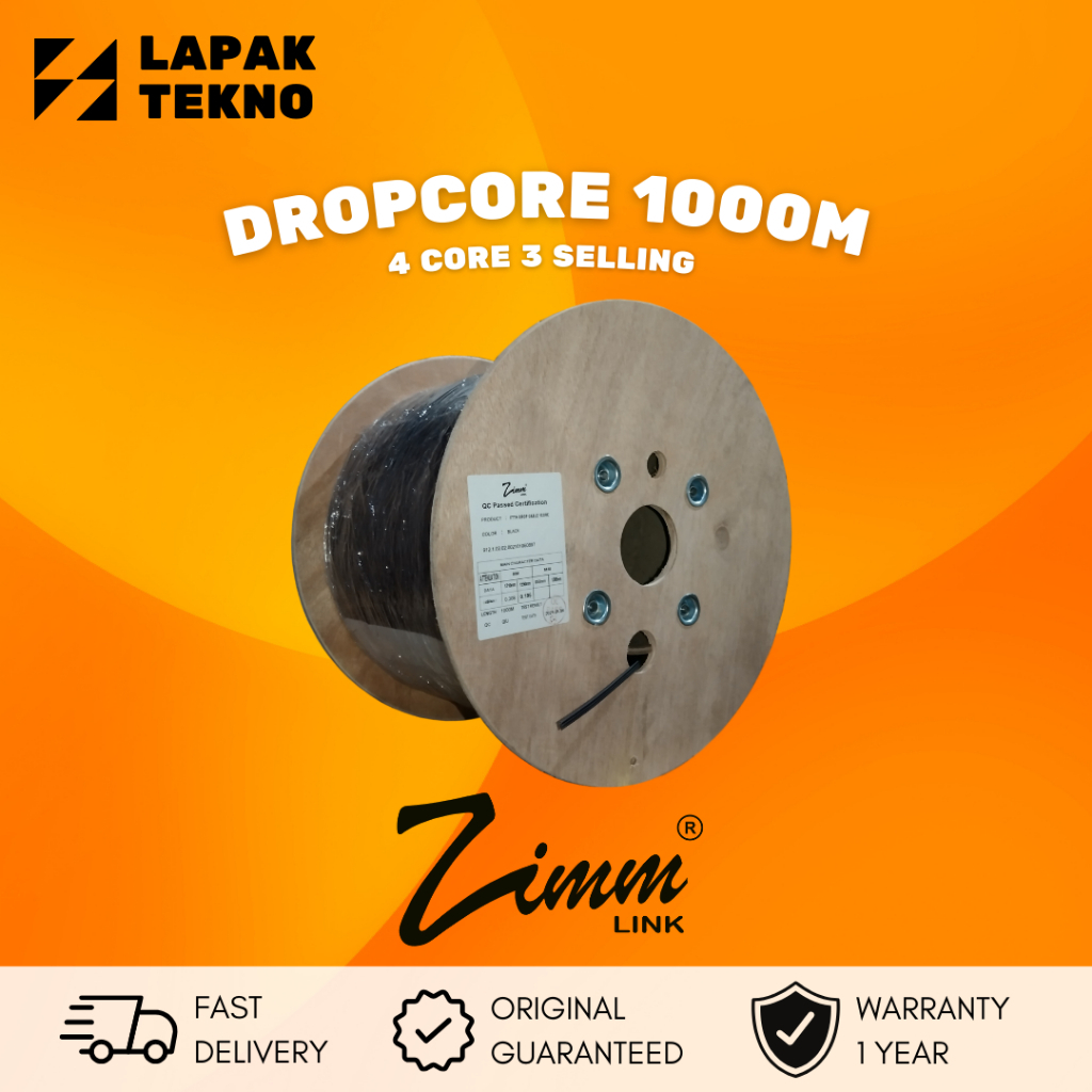 ZIMMLINK Kabel Dropcore 4 Core 1000 Meter 1KM Kabel Fiber Optik 1000m FTTH ZIMM LINK