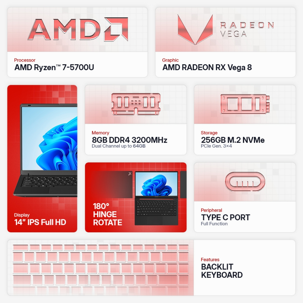 Axioo MyBook Hype 7 AMD X7 Ryzen 7-5700U/8GB/512GB/FHD IPS