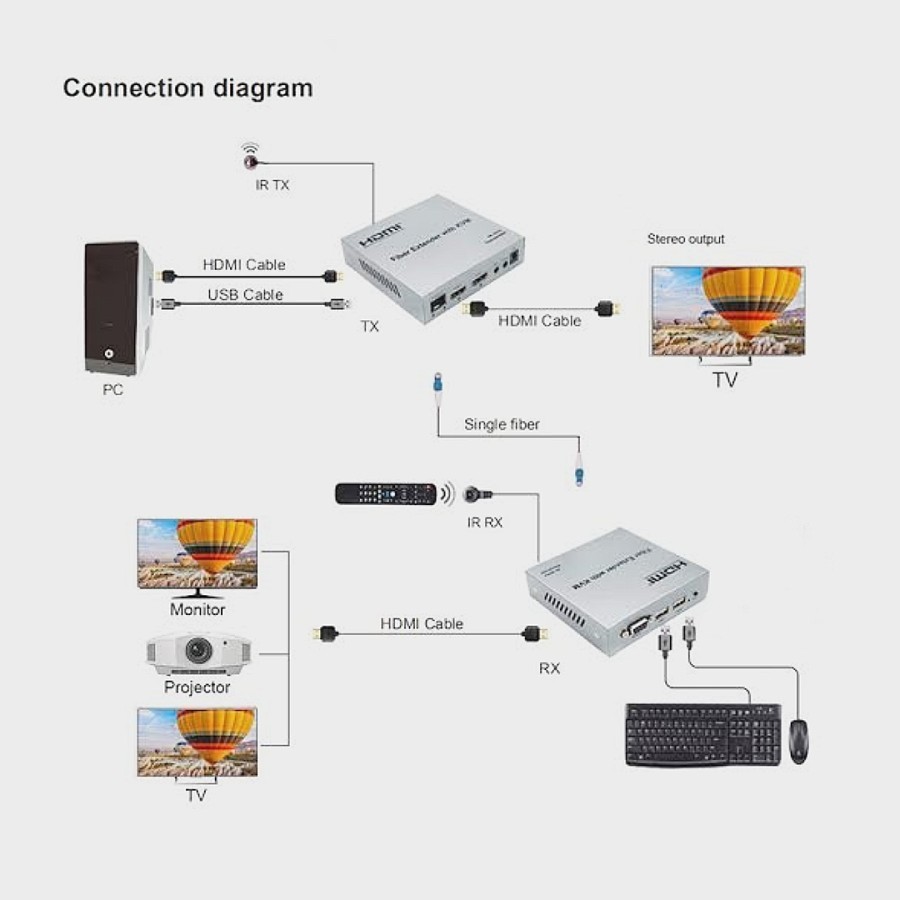 HDMI Extender 20 KM Via Fiber Optic Single Mode HDOPEX-200