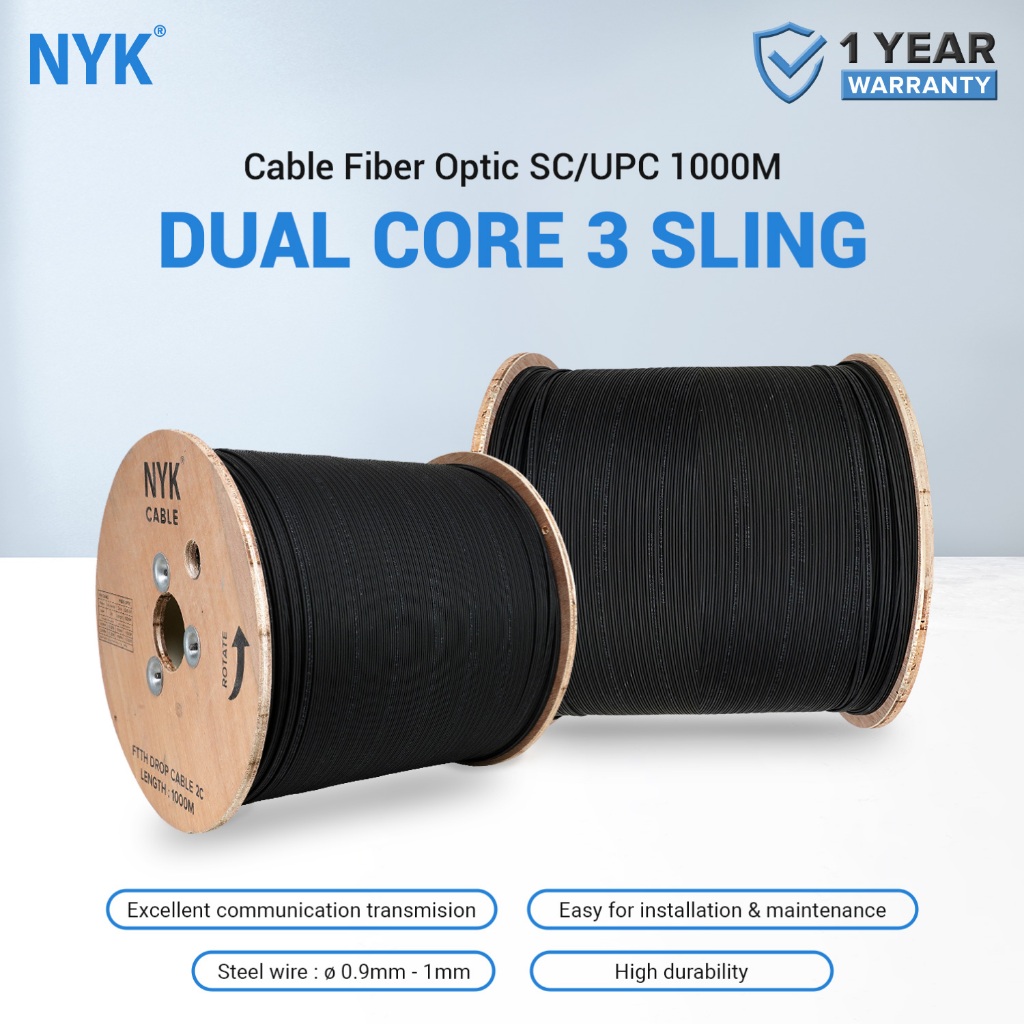 Kabel Fiber Optic Single Core 3 Sling SC UPC 1 KM CB FON 1000 ROLL