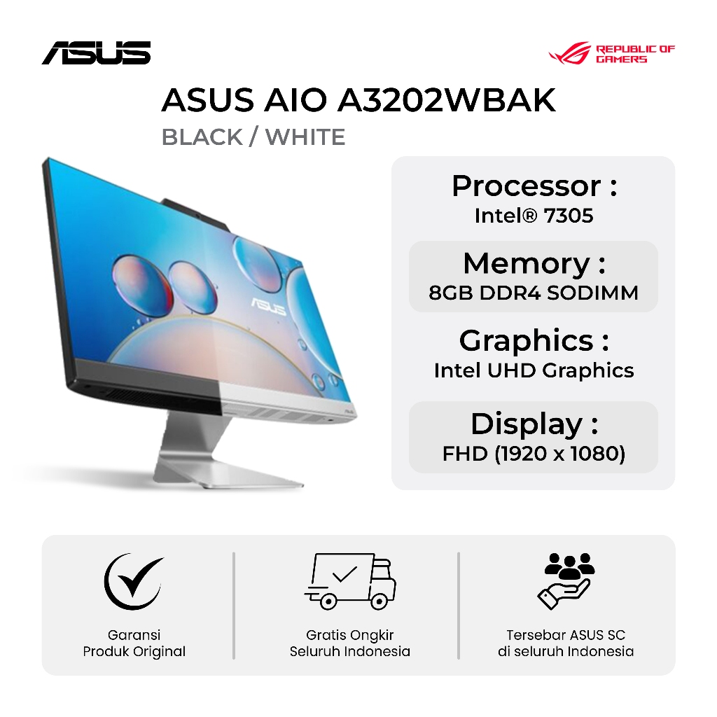 PC ASUS AIO A3202WBAK INTEL 7305 8GB 256GB WINDOWS 11 21.5 INCH FHD
