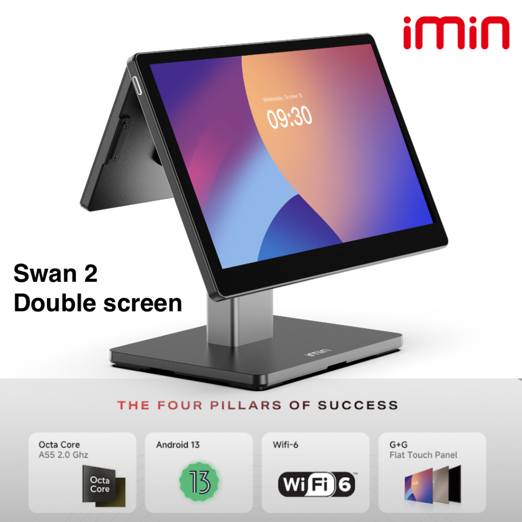 iMin Mesin kasir Android 13 Swan 2 Memory 4 GB / 64 GB Double screen 15.6' + 10.1'