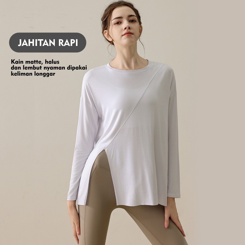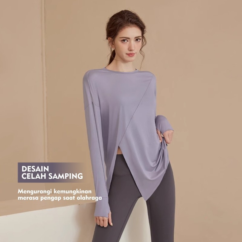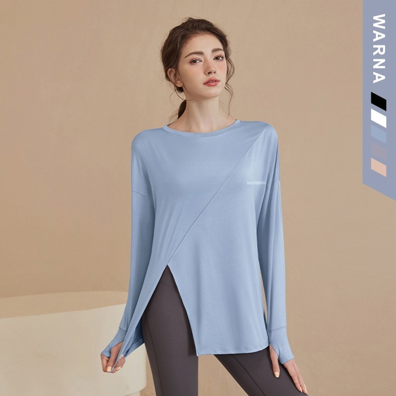 YOUMI Baju Gym Atasan Kaos Olahraga Polos Wanita Lengan Panjang Manset Cewek Oversize Lari Badminton Jogging T Shirt Lon