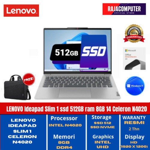 laptop LENOVO IDEAPAD SLIM 14 N4020 8GB 512GB W11+OHS 14.0 2Y resmi