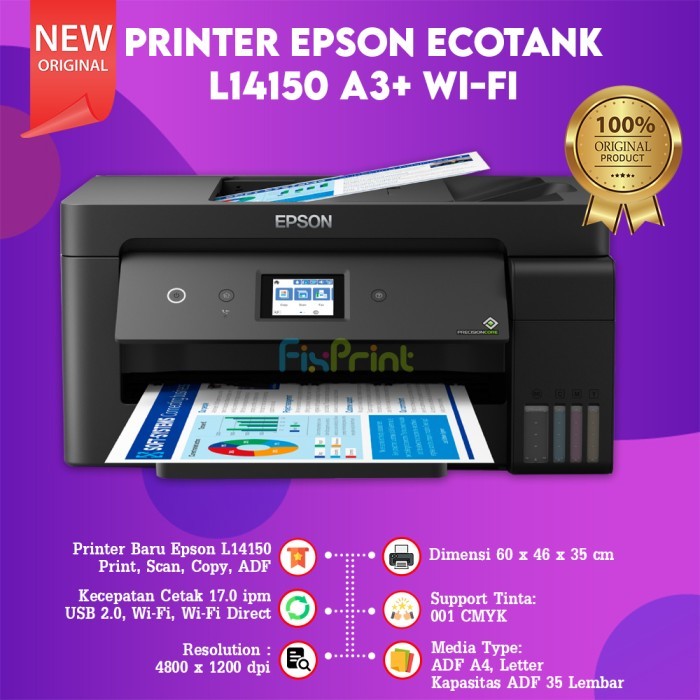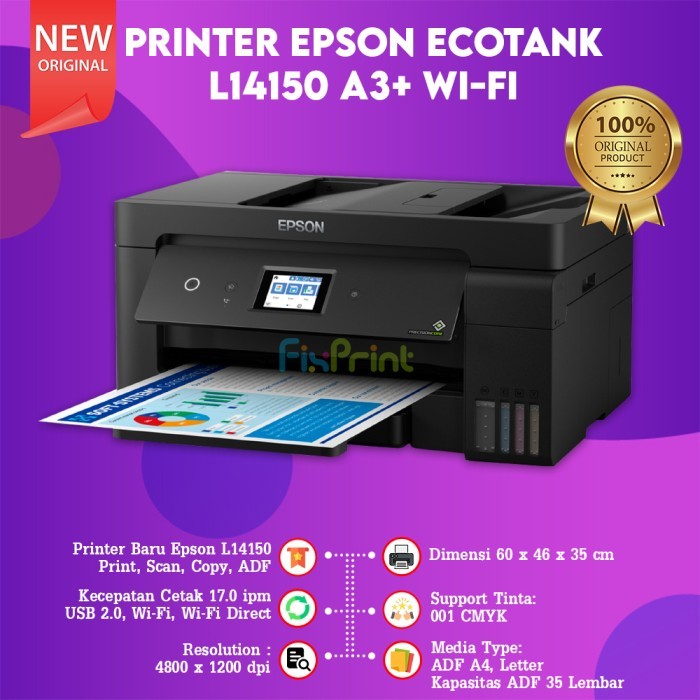 Printer Epson L14150 A3+ Wide Format Print Scan Copy WiFi Tinta 001