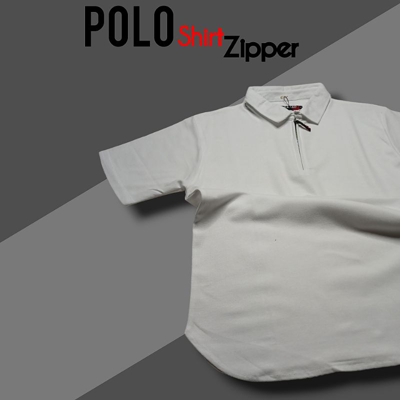 Kaos Kerah Polo Shirt Pria Polos Lengan Pendek Zipper Putih M L XL XXL