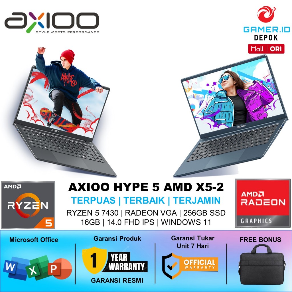AXIOO HYPE 5 AMD X5-2 RYZEN 5 7430U RAM 16GB SSD 256GB WINDOWS 11 FHD IPS