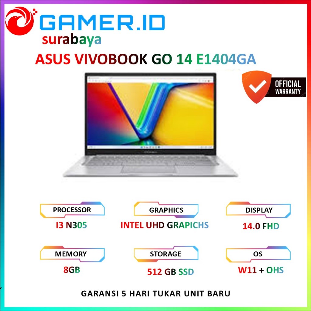 ASUS VIVOBOOK GO 14 E1404GA I3 N305 8GB 512GB 14.0FHD