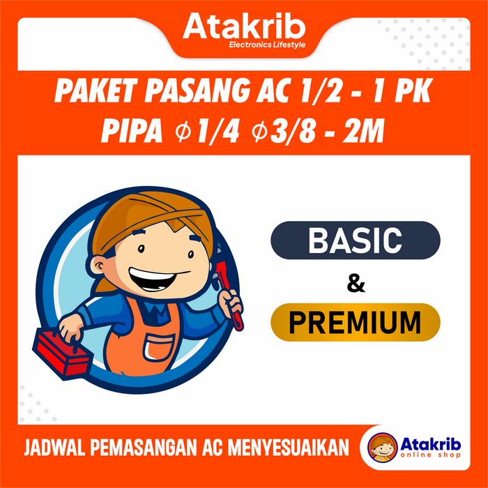 JASA PASANG AC 0.5 - 1 PK DAN PERLENGKAPAN (PIPA ⌀1/4 ⌀3/8 - 2M) - PREMIUM