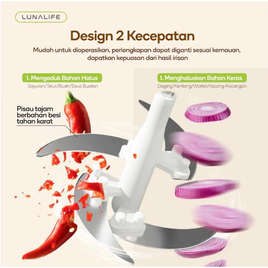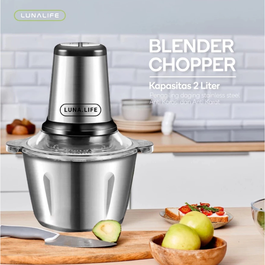 CHOPPER FP02 LUNALIFE / LUNALIFE Blender Chopper FP02 Penggiling Daging 2L Stainless Steel 200Watt
