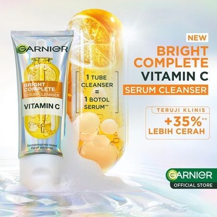 Garnier Bright Complete Vitamin C Serum Cleanser 100ml | Pembersih Wajah Mencerahkan Seperti Serum | Serum Wash