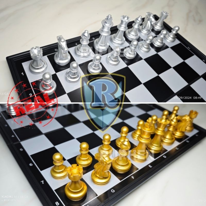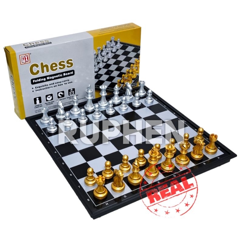 CATUR LIPAT PAPAN CATUR MAGNET XL BIDAK EM AS PER AK MAGNETIC CHESS SHINY GO LD SIL VER 31,7 X 31,7 CM