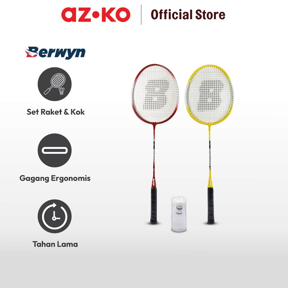 AZKO Berwyn Set 2 Pcs Raket Dan Kok Raket Bulu Tangkis Racket Badminton Perlengkapan Olahraga Set Badminton Sports