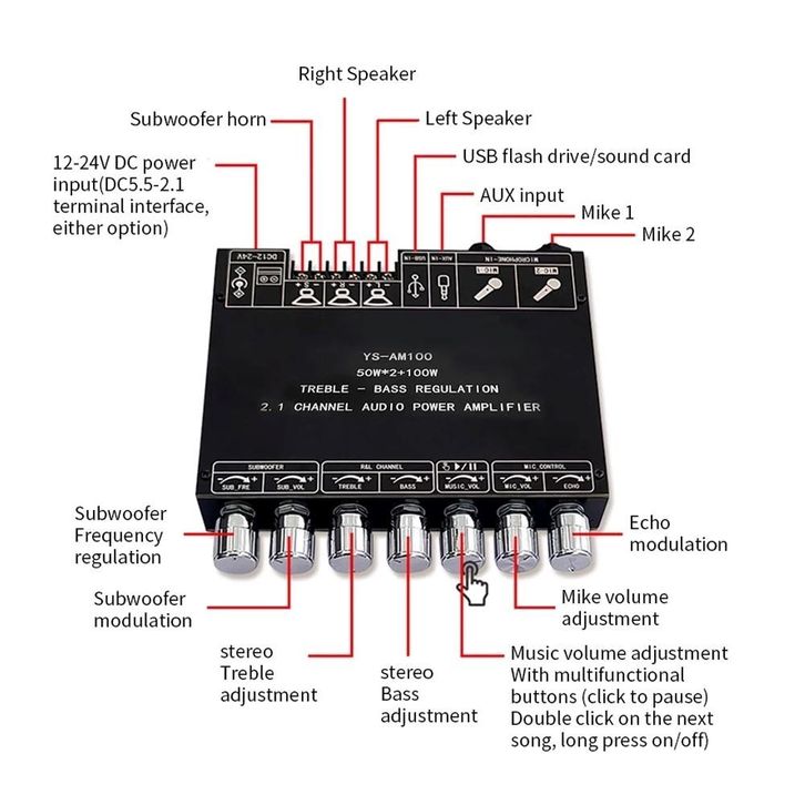 YS-AM100 Bluetooth digital power amplifier 50Wx2+100W amplifier Bluetooth 5.0 Amplifier Board TPA3116D2