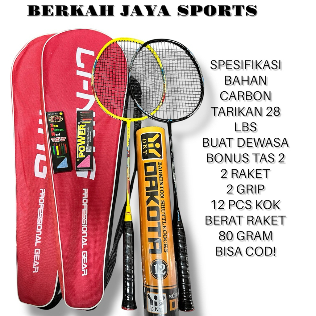 RAKET BADMINTON DEWASA CARBON PAKET LENGKAP