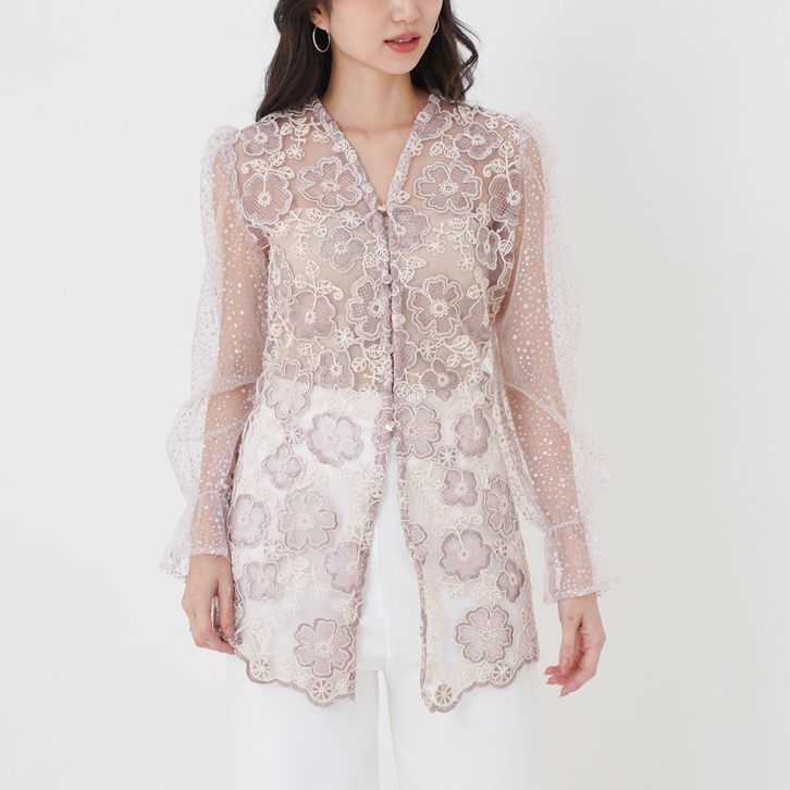 Elzia Outer Brokat Blouse Atasan Korean Look Outfit Baju Kondangan Wanita Modern Simple Terbaru Kekinian