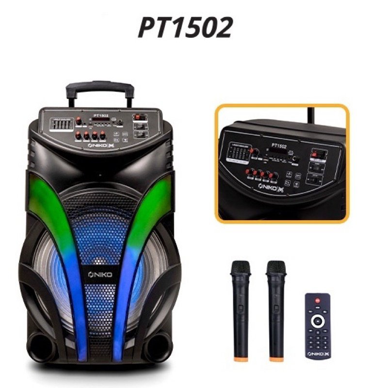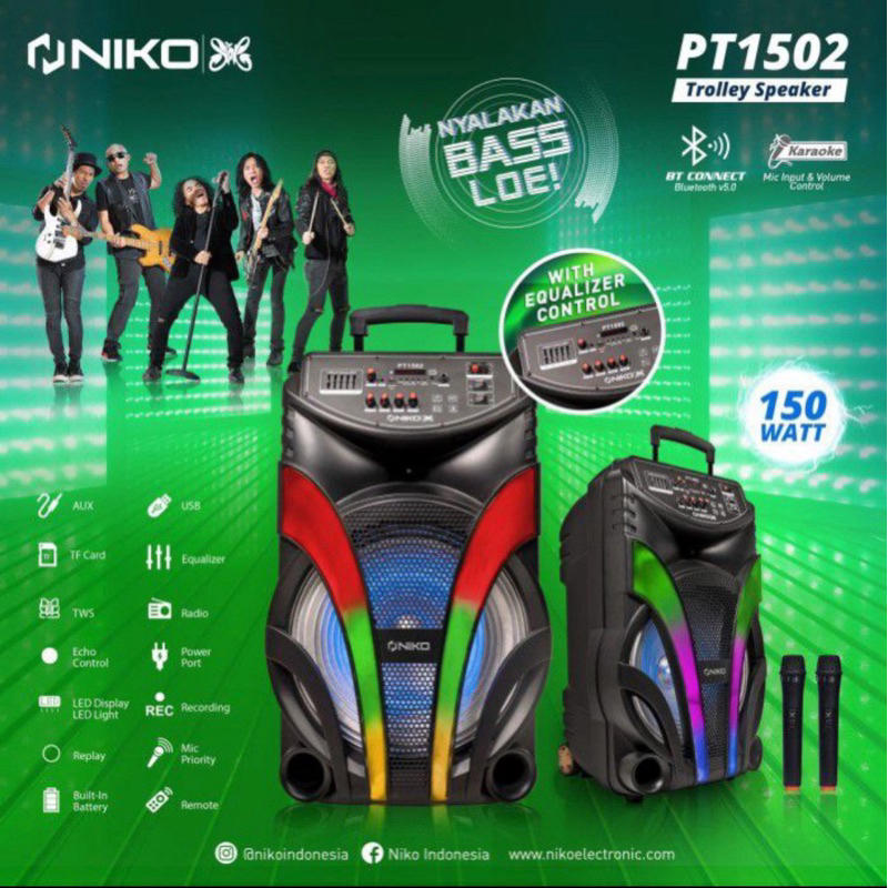 Trolley Speaker NIKO 15 inch PT-1502 free 2mic wireless speaker bluetooth portabel Gratis Ongkir