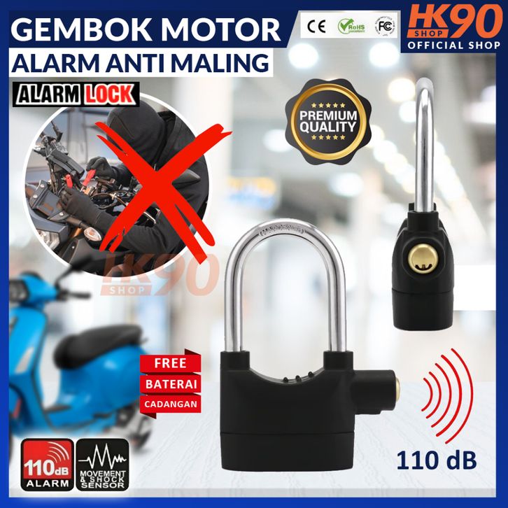 Gembok Motor Alarm Anti Maling Pengaman Suara Keras Ring Panjang Pendek