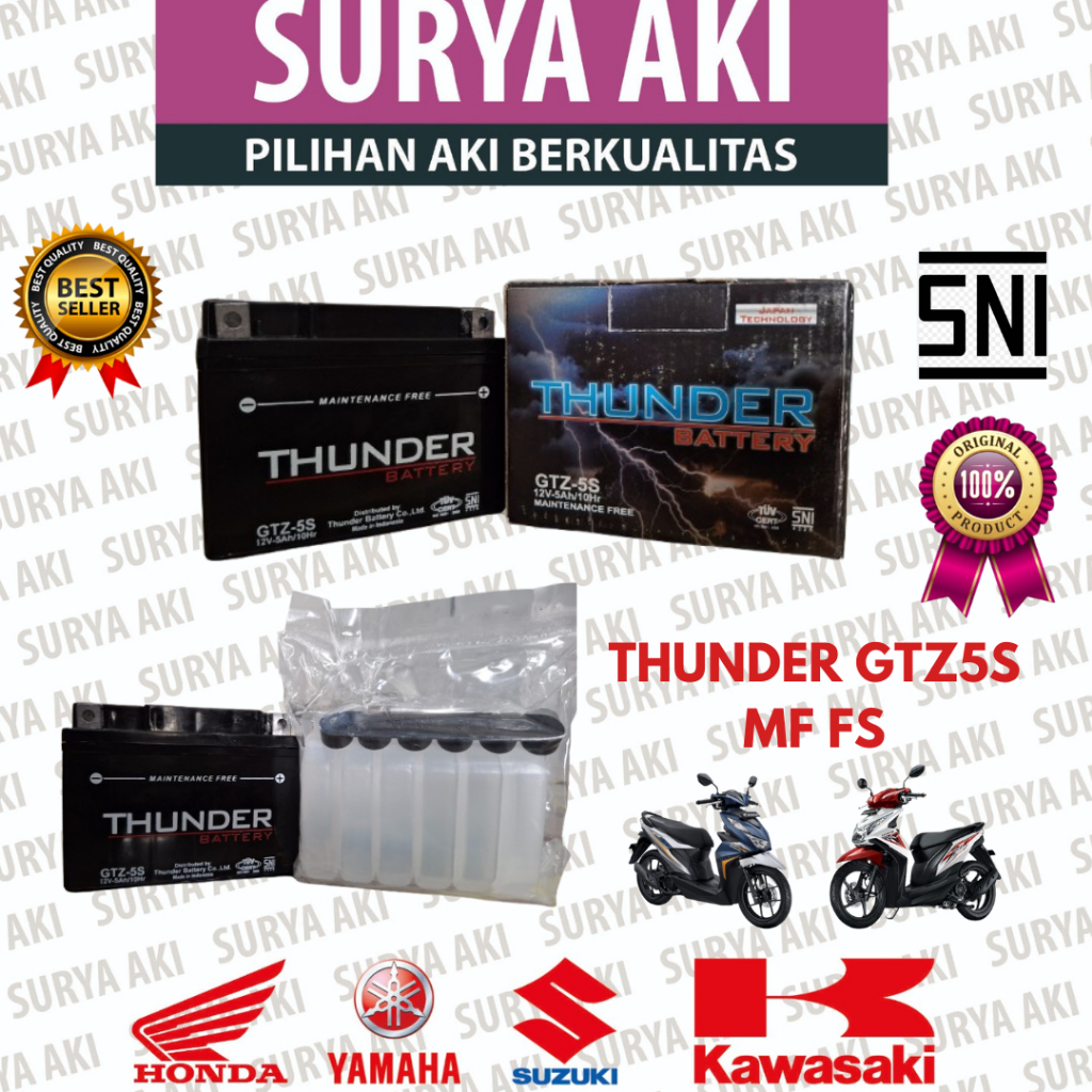 Aki Kering GTZ5S MF THUNDER Aki Motor Vario 110 Beat Karbu Verza Jupiter MX New