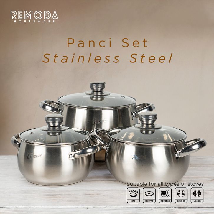 Panci Soup Panci Sayur Tutup Kaca Calypso Soup Pot Panci Kuah Set 3in1 Stainless Steel