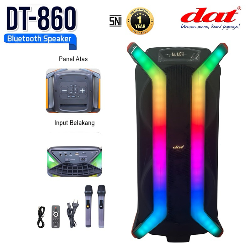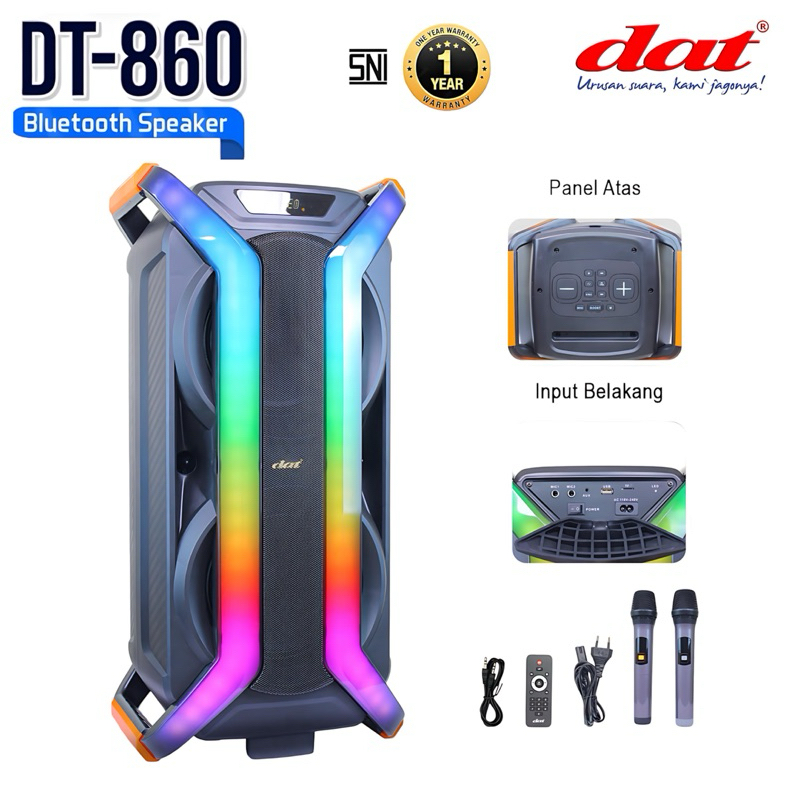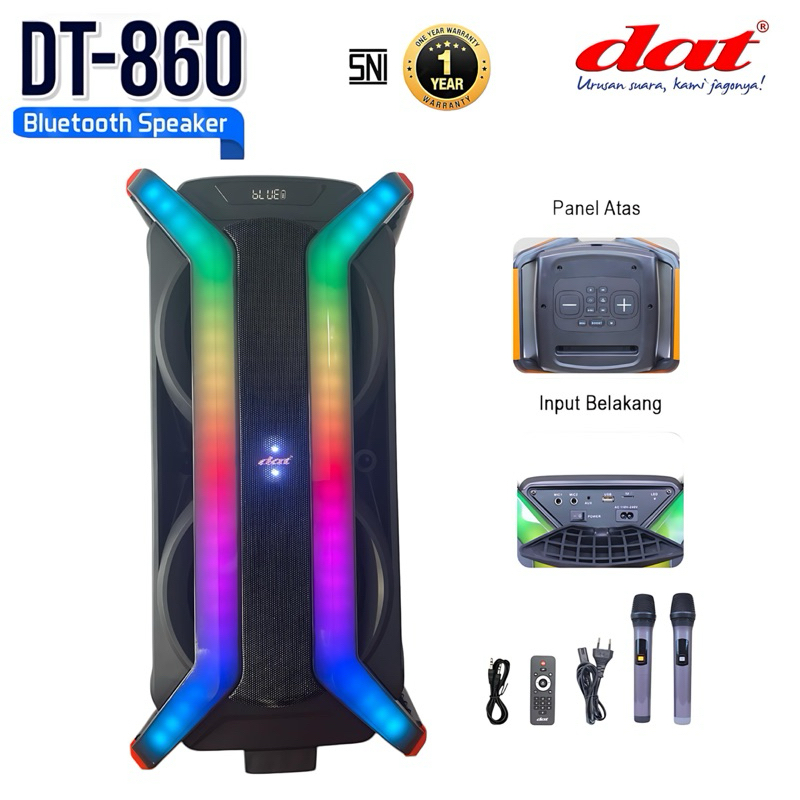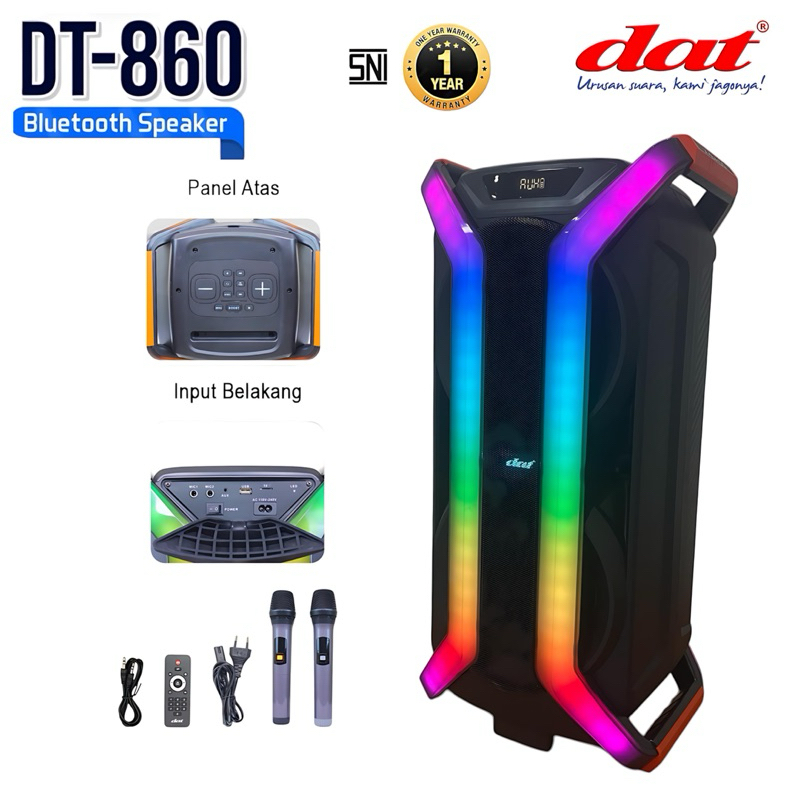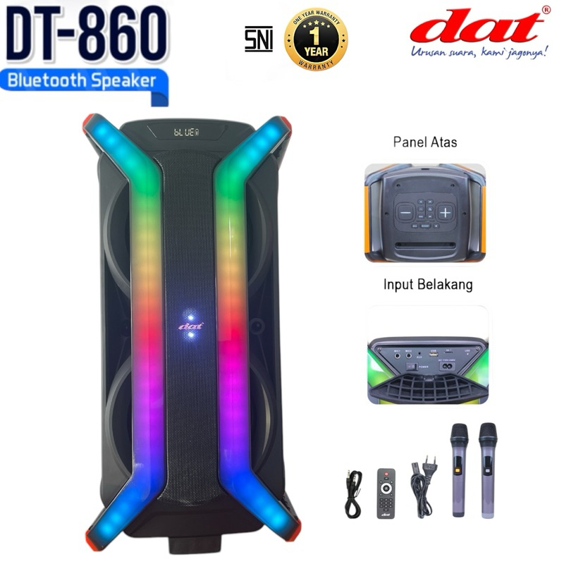 Speaker DAT DT-860 speaker bluetooth portabel speaker aktif full bass dilengkapi 2mic wireles karaoke gratis ongkir