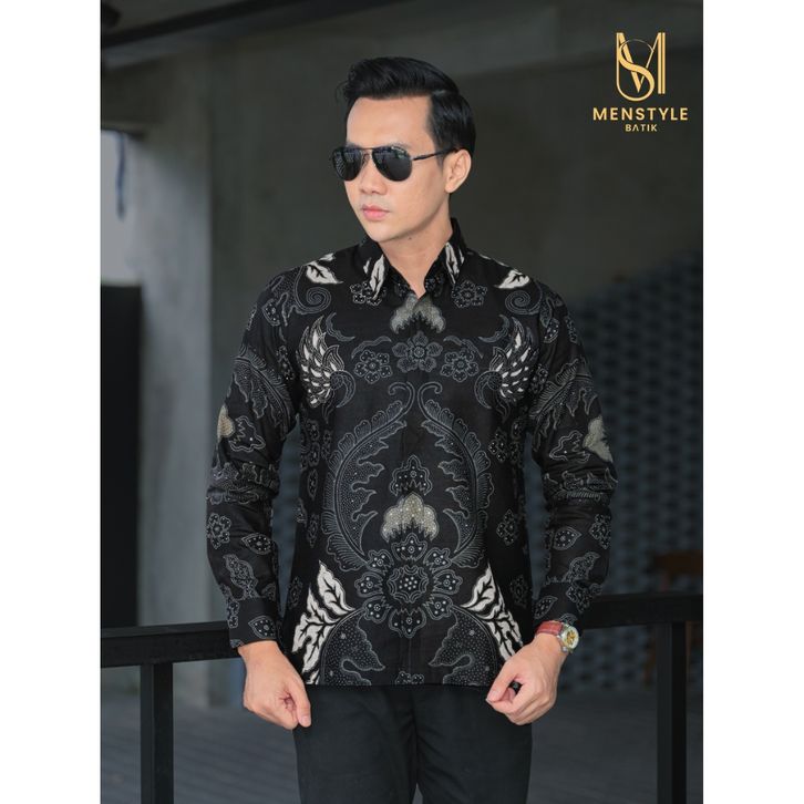 MENSTYLE BATIK - Kemeja Batik Pria Slimfit Bhaskara Hitam Cream Motif Ceplok Gurdo 2