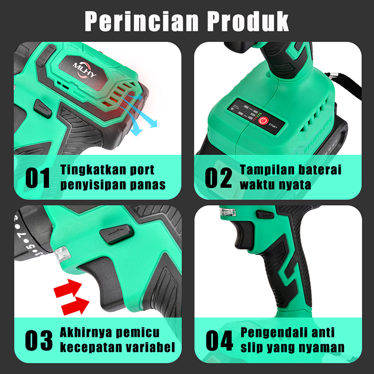 MLHY 48VF Brushless Cordless Impact Bor Mesin Bor Cordless 3 Sistem 10mm Bor Listrik / Bor Baterai / Impect Bor