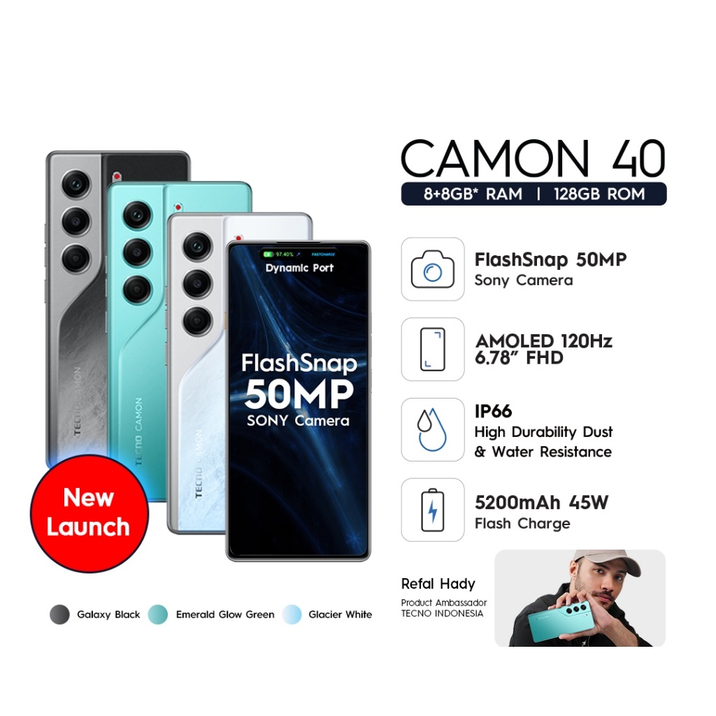 TECNO CAMON 40 8+8GB 128 GB, 50MP Sony + 8MP Ultra Wide Camera, 32MP Front Camera, 120hz AMOLED, IP66, 5200mAh, 45W