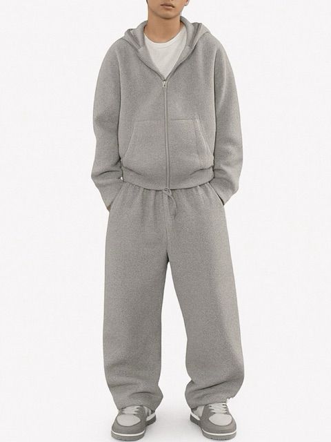 One Set Double Zipper Boxy Hoodie + Baggy Sweatpants Basic Fleece Kekinian Premium