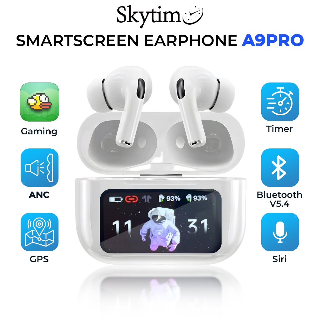 [Star] Earphone Skytime Earphone A9 Pro LED Touch Screen Noice Cancelling Bluetooth Layar Kaca Sentuh Tahan Hingga 48jam