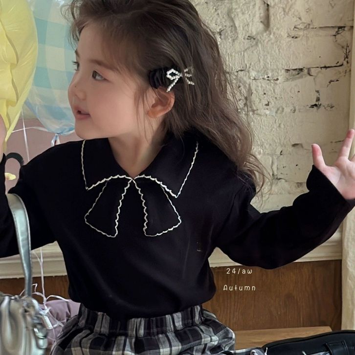 1-9 Tahun Kaos Lengan Panjang Anak Perempuan Motif Pita 2025 Atasan Kerah Manis Bayi Musim Semi Dan Musim Gugur
