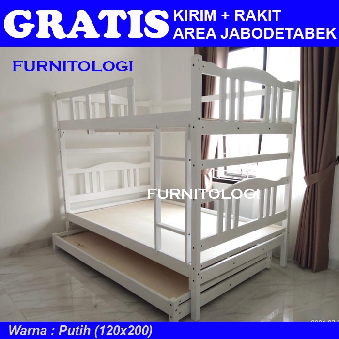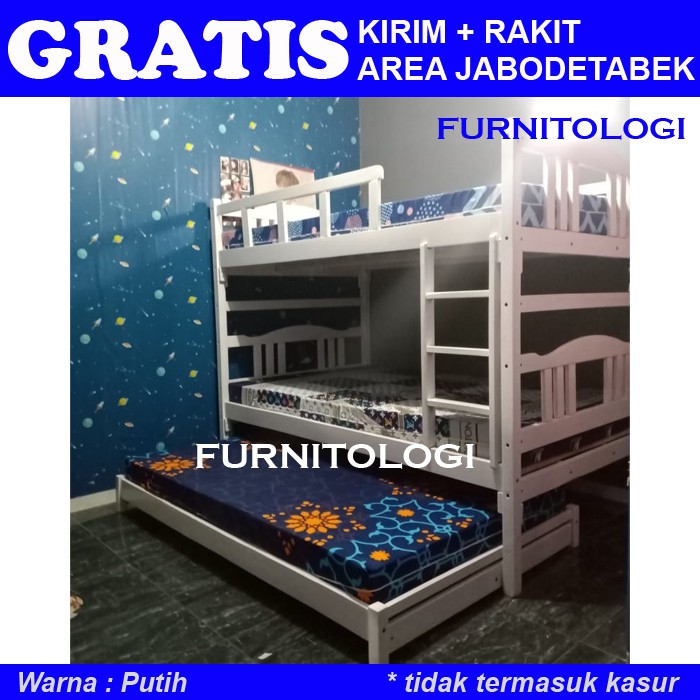 RANJANG SUSUN 3 TINGKAT UK 120X200 DIPAN TINGKAT KAYU TEMPAT TIDUR TINGKAT SORONG BUNK BED