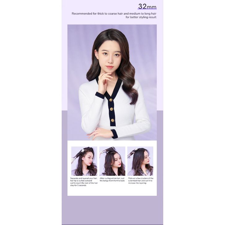Terlaris Lena x Wet Brush Hair Curler 32mm LN-922 ø3.5 - Catokan Curly Diameter 32mm Ceramics Tourmaline Negative Ionic