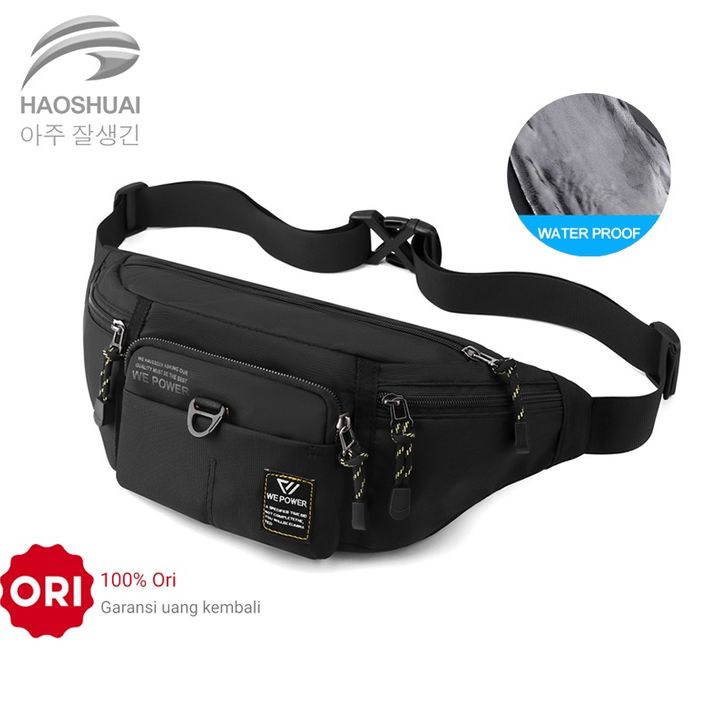ORIGINAL Tas Selempang Pria HAOSHUAI 5802 Waistbag Pria Waterproof BAEOS igegr