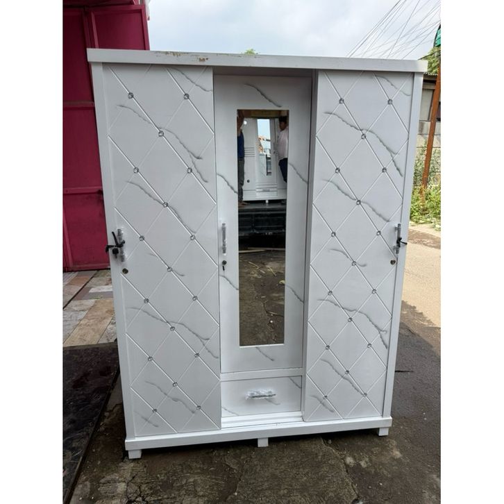 lemari sleding 3 pintu laci 1 putih ukuran 150x42x190 bahan multiplek